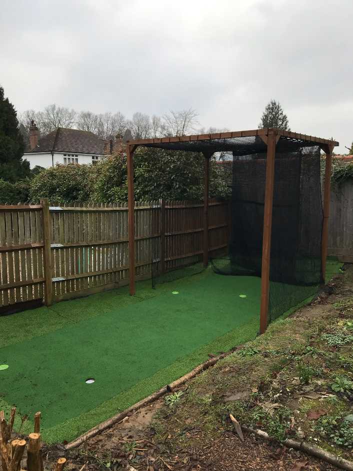 As you can see from the pictures, I built my putting green / full shot net in limited space. It sits between my veggie patch and a fence.